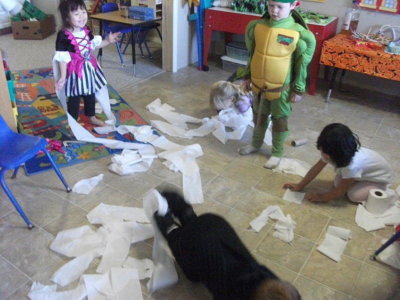 The mummy wrap turned into this. But the mess was fun to make, and easy to clean.